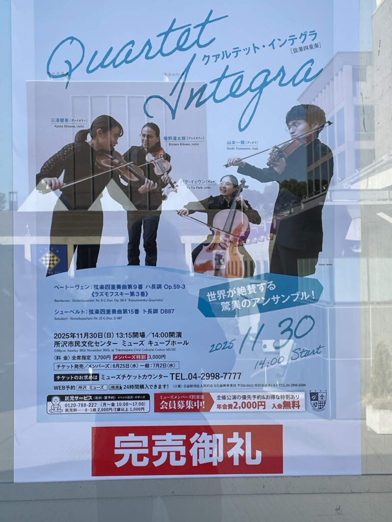 久しぶりに弦楽四重奏を聴いた 溌剌としたいいアンサンブルでした これからが楽しみです